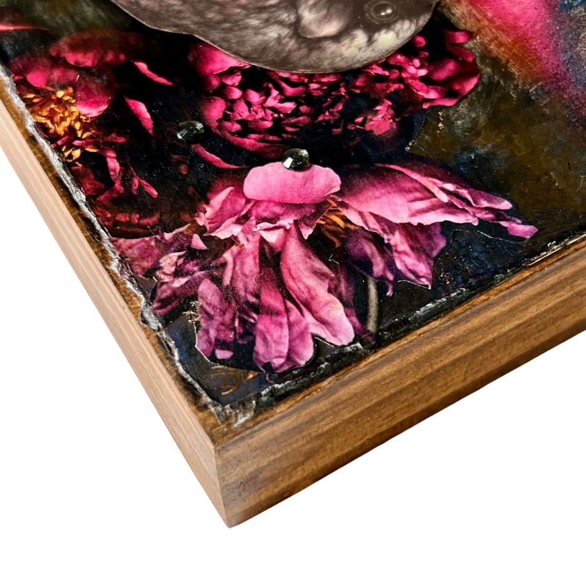 - This one-of-a-kind piece measures 8.00″ high x 8.00″ wide x 1.50″ deep, is sealed with a matte, archival finish, and ready to hang on your wall.