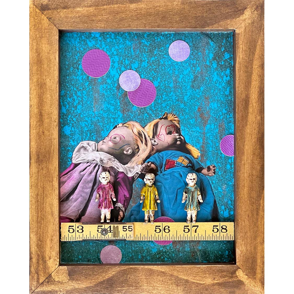 Still Standing is where Toy Story collides with middle age. It’s about survival, memory, and the thoughts and objects that stay with us longer than we expect. This one-of-a-kind collage/shadowbox measures 10″ high x 8″ wide x .75″ deep.