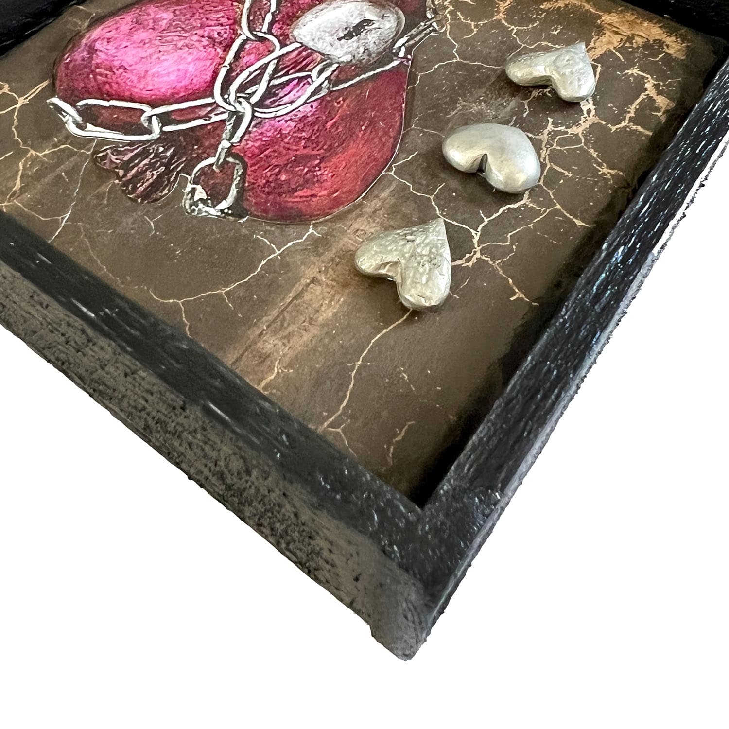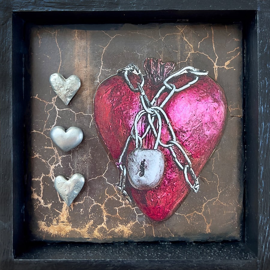 This one-of-a-kind piece measures 5.50″ high x 5.50″ wide x 1.50″ deep, is sealed with a matte, archival finish, and ready to hang on your wall.